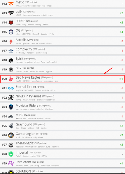 Në fakt, shqiponjat e Kosovës e shohin veten në mesin e 20 ekipeve më të mira në botë, në bazë të përditësimit të renditjes më të re, të publikuar nga faqja e specializuar e kësaj pune, hltv.org, përcjell “Gazeta Express”.