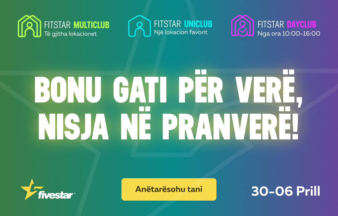 Regjistrohu online në foleja.com ose vizito pikën më të afërt FiveStar Fitness dhe nis rrugëtimin drejt energjisë dhe vetëbesimit!