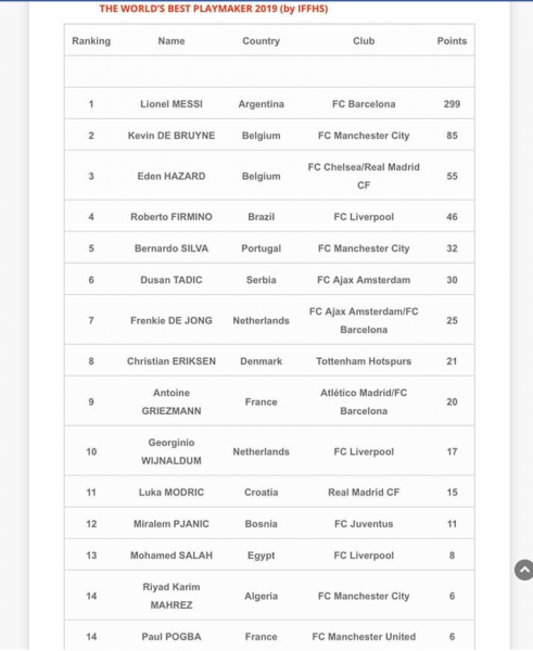 10-shi magjik i Barcelonës ka marrë 299 pikë duke u vlerësuar si organizatori më i mirë, duke lënë prapa mesfushorin e Manchester City, Kevin de Bruyne me 85 pikë.