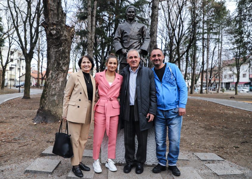 Kjo statujë e xhudistes kosovare është ndërtuar nga Federata Ndërkombëtare e Xhudos, ndërsa për lokacionin e saj ishte diskutuar shumë, pasi që trajneri Driton Kuka ishte ankuar pse Komuna e Prishtinës nuk i ka kthyer përgjigje për ta vendosur atë në kryeqytet.